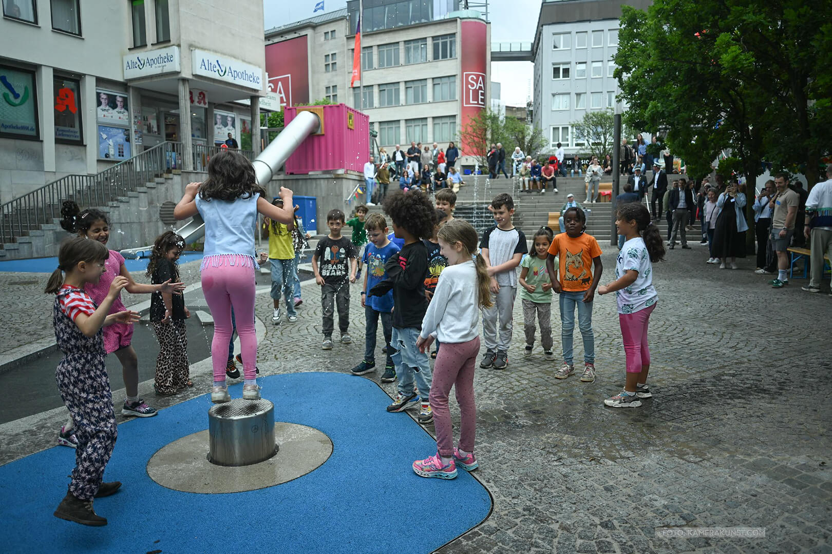 Heute, am Freitag, 27. Juni, wurde der neugestaltete Platz am Kuhhirten offiziell eröffnet – mit dabei: Oberbürgermeister Thomas Eiskirch, der die neue Spiel- und Bewegungsfläche mitten in der Bochumer Innenstadt freigegeben hat.